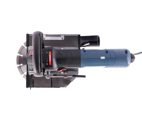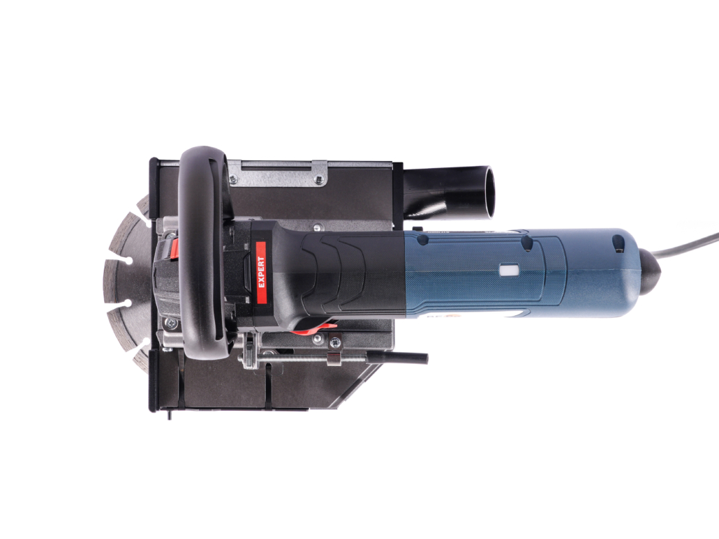 Die Schnittfugentiefe kann mittels Knopfdruck schnell und einfach verstellt werden. Durch Drehen an der Einstellschraube wird die gewünschte Schnitttiefe exakt feinjustiert und fixiert.