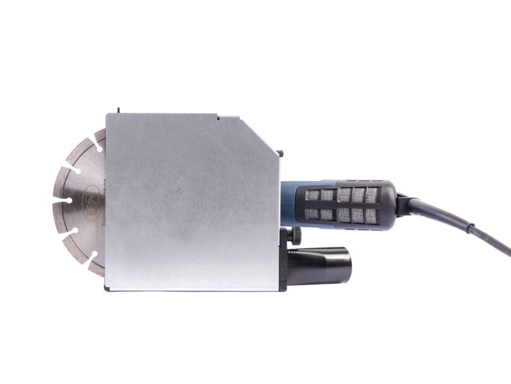 Das Werkzeug der BEPo FFS Montagefräse rotiert im geschlossenen Gehäuse. Der Absaugstutzen liegt direkt im Luftstrom des Schneidewerkzeugs. So können Sie zuverlässig staubfrei arbeiten bei bestimmungsgemäßer Verwendung und Nutzung einer geeigneten Absaugung.